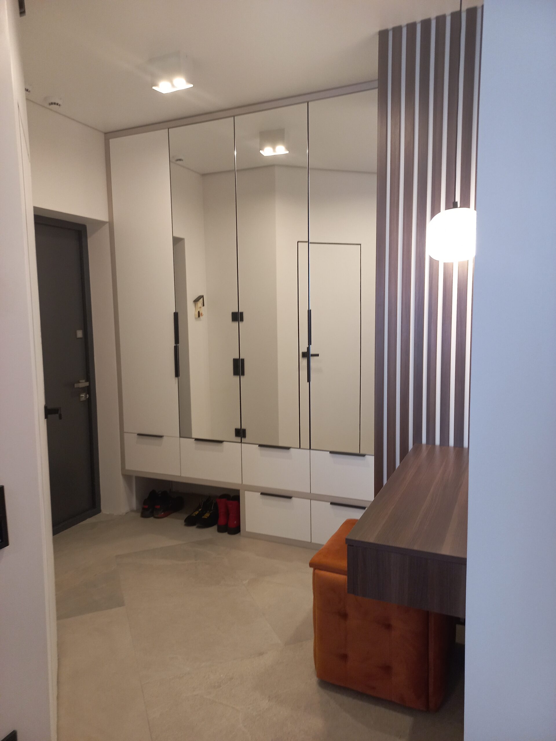 Замовлення меблів для передпокою дозволяє вам самостійно визначити внутрішнє наповнення шаф. Ви можете зберігати все необхідне – від одягу та взуття до шарфів та парасольок – в одному місці завдяки функціональному наповненню шаф.
